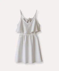 Vestido Catalina, ligero en tono blanco, con tirantes ajustables, escote en V y cintura elástica que crea una silueta A-line con volumen suave en la falda. Tejido suave y caída fluida, sin cierre. Ideal para días soleados y eventos informales, con look casual para combinar con sandalias planas y sombrero de verano. Tallas 4-14.