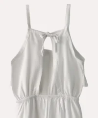 Vestido catalina, ligero con tirantes y cintura elástica Es la elección perfecta para días soleados y eventos informales. Con tirantes ajustables y un escote en V suave, ofrece un look femenino y cómodo. La silueta se ajusta en la cintura gracias a un práctico elástico que realza la figura sin perder comodidad, jugando con volumen en la falda para un movimiento suave y elegante. Confeccionado en tela suave y de caída fluida. Los detalles del vestido son, corte A-line con cintura elástica, tirantes ajustables, escote en V, largo según tallaje,sin cierre; fácil de poner, tejido suave con buena caída, disponible en blanco. Para un look casual con sandalias planas y una sombrero de verano Tallas: 4-14